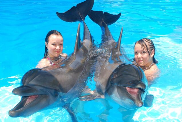 Experience the magic of swimming with dolphins in Sharm El Sheikh! Enjoy up-close interaction with these intelligent and playful creatures in a large pool. During your session, you’ll have the chance to kiss, hug, touch, sing, and play with the dolphins, creating unforgettable memories.