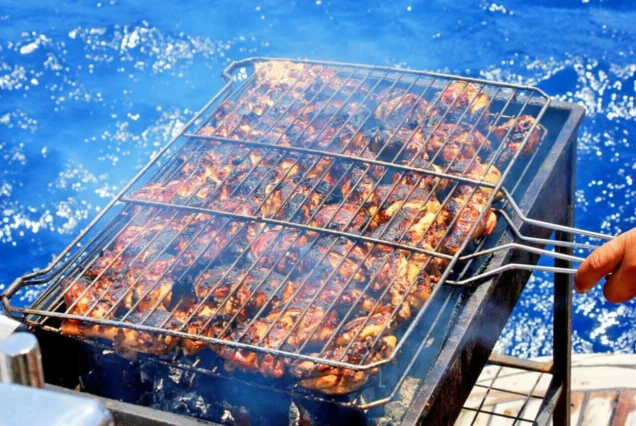 - After the second stop, relax on board and enjoy your lunch. Lunch is a buffet-style affair with chicken, kofta, rice, pasta, salads, Bedouin bread, and sometimes freshly caught fish, along with soft drinks.